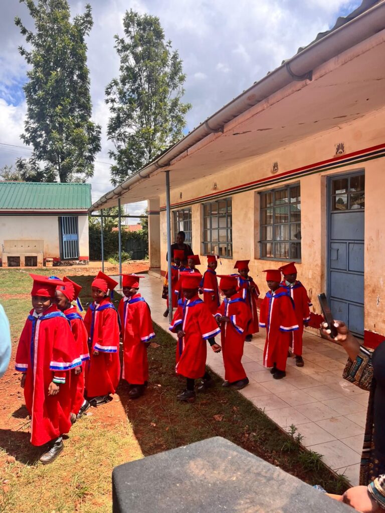 In Kenia dauert die Vorschule drei Jahre. Am Ende dieser wichtigen Lernphase wird der Abschluss mit einer feierlichen Abschlussfeier gefeiert – ein besonderer Moment für jedes Kind. Die Kinder tragen dabei traditionelle Abschlussroben und erhalten ein offizielles Zertifikat, das ihren erfolgreichen Abschluss bestätigt.